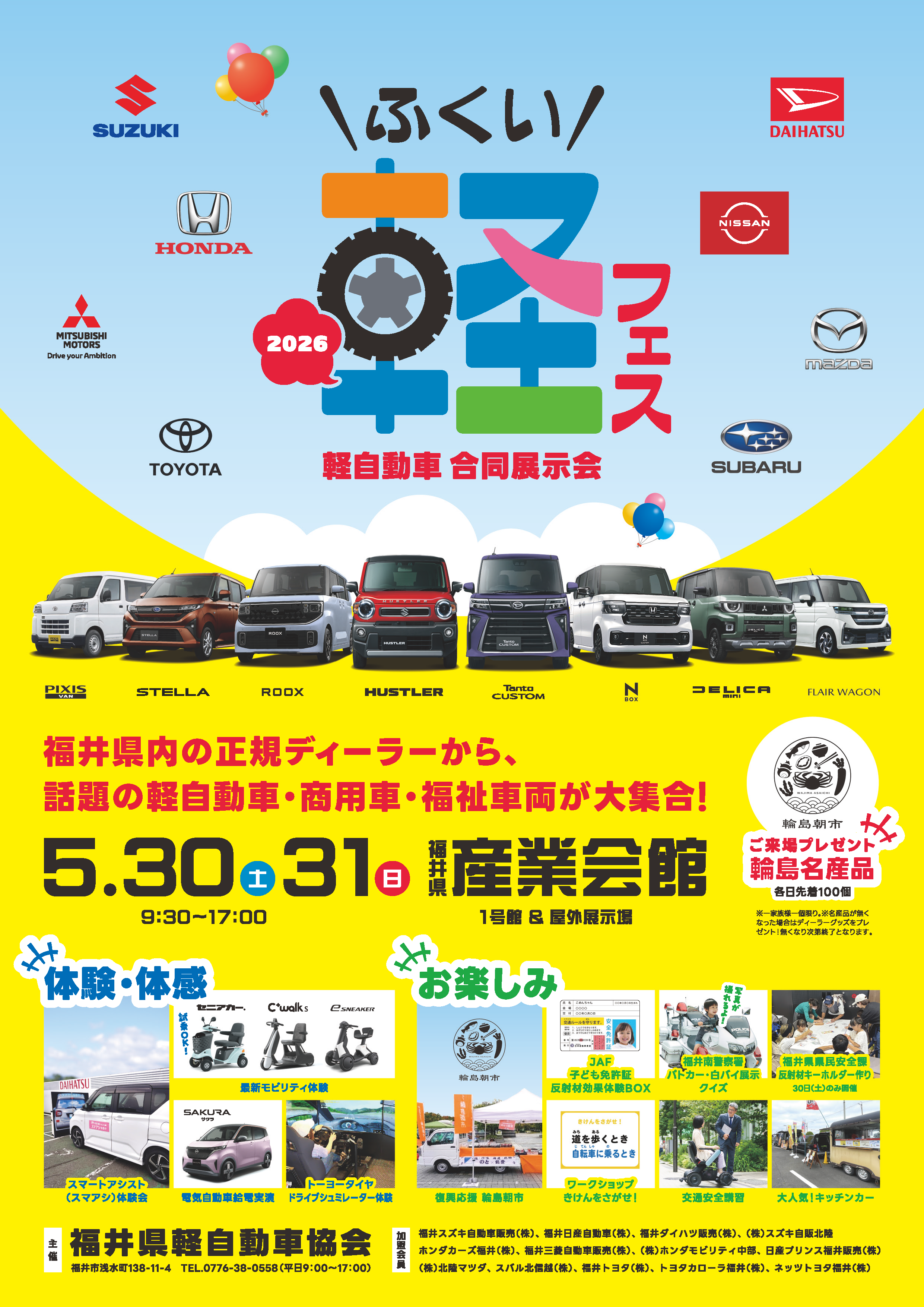 福井県軽自動車協会の会員13社から話題の軽自動車約50台を展示します。