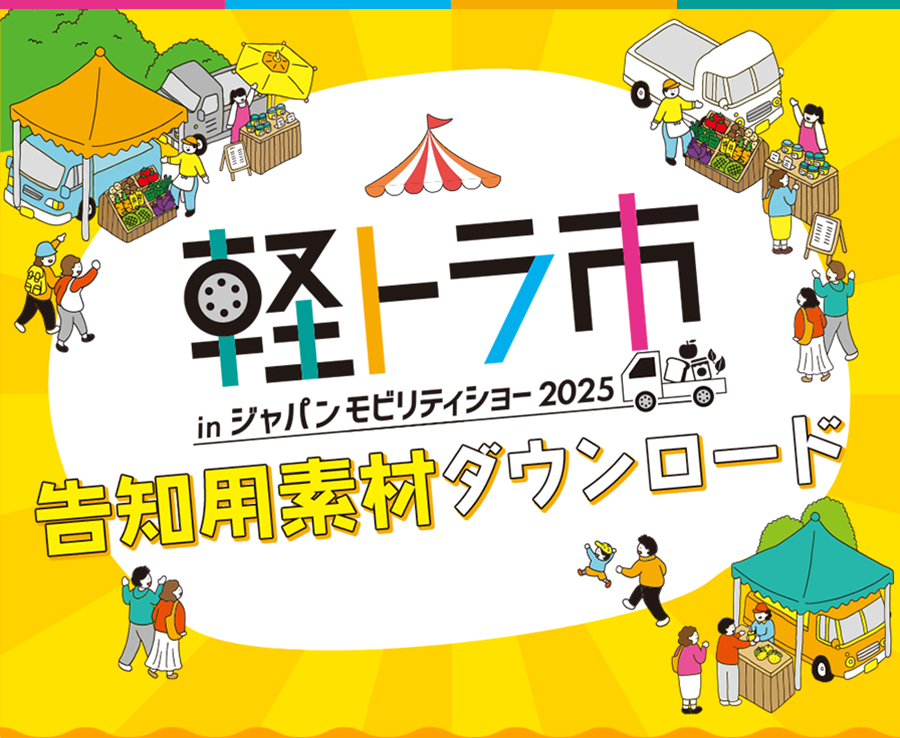 ダウンロード素材の使用はWEBサイトやSNSに掲載して告知、 またはプリントアウトして掲示等にご使用ください。 SNS上で告知いただく際にはハッシュタグ「 #軽トラ市inJMS2025 」 をつけて投稿いただくようにお願いします。